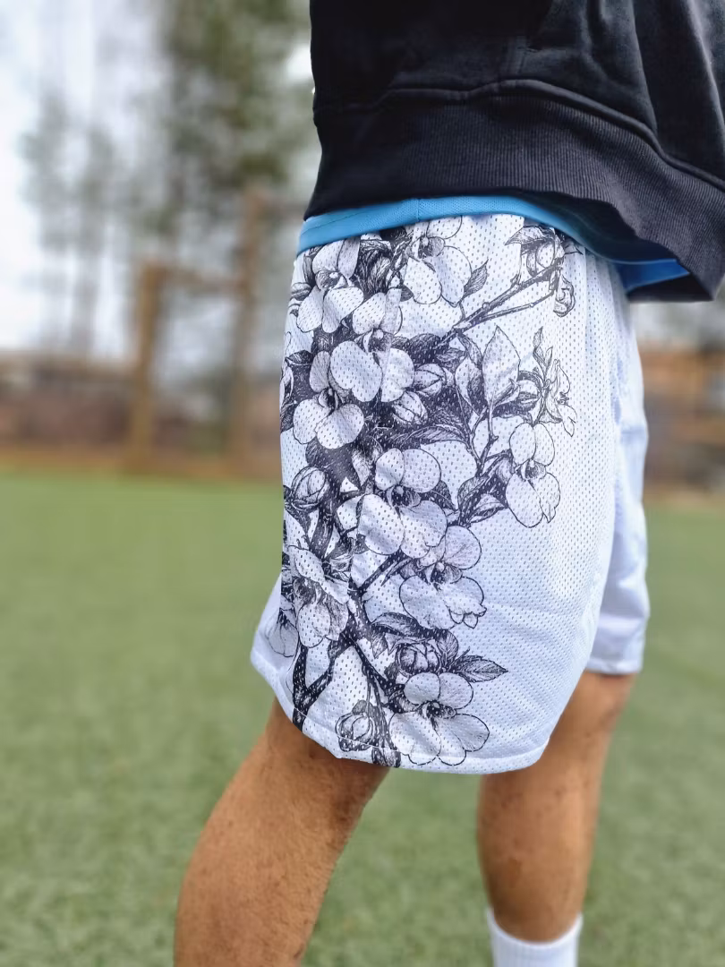 Myk treningsshorts med lommer. Shortsen er laget i lett polyester med små hull, som gjør at den puster og ikke blir klam. Passformen er romslig og kort. Det anbefales å gå opp en til to størrelser dersom man vil ha en romsligere passform. En XL kan sammenlignes med en normal M om man vil ha shortsen litt lengre og løsere rundt midjen.